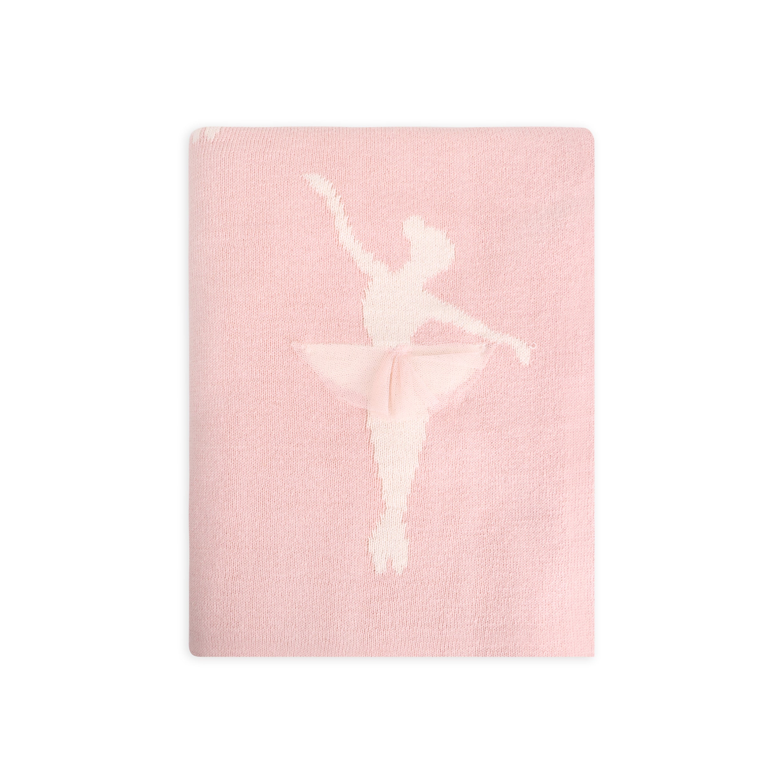 Luxurious 100% Organic Cotton Jacquard Knitted Reversible Baby Blanket with blush pink tutu 3D elements.