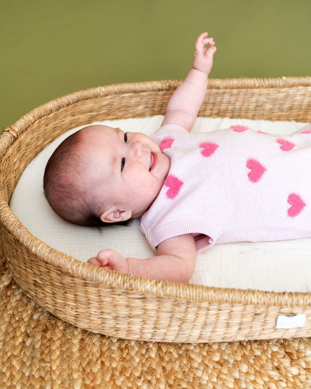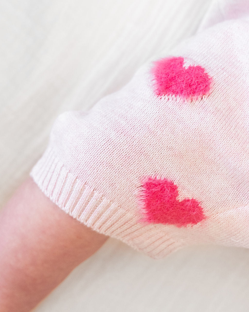Fuzzy Hearts 3D Jacquard Knit Short Sleeve Baby Romper (Organic Cotton)