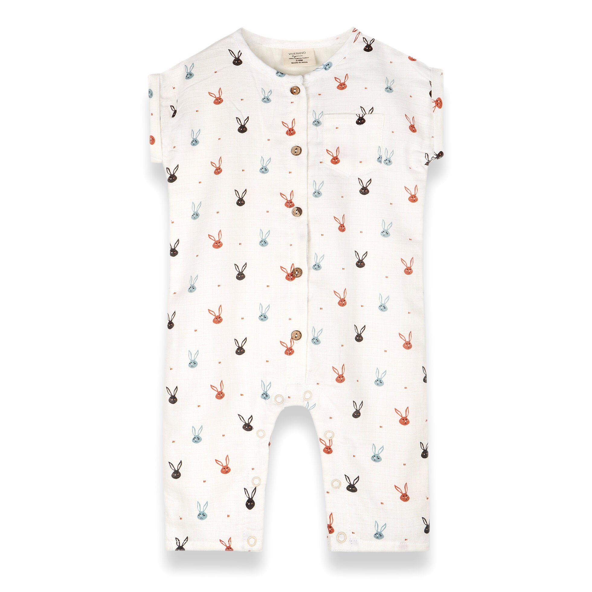 Mini Bunnies Rolled Short Sleeve Baby Jumpsuit (Organic Muslin)