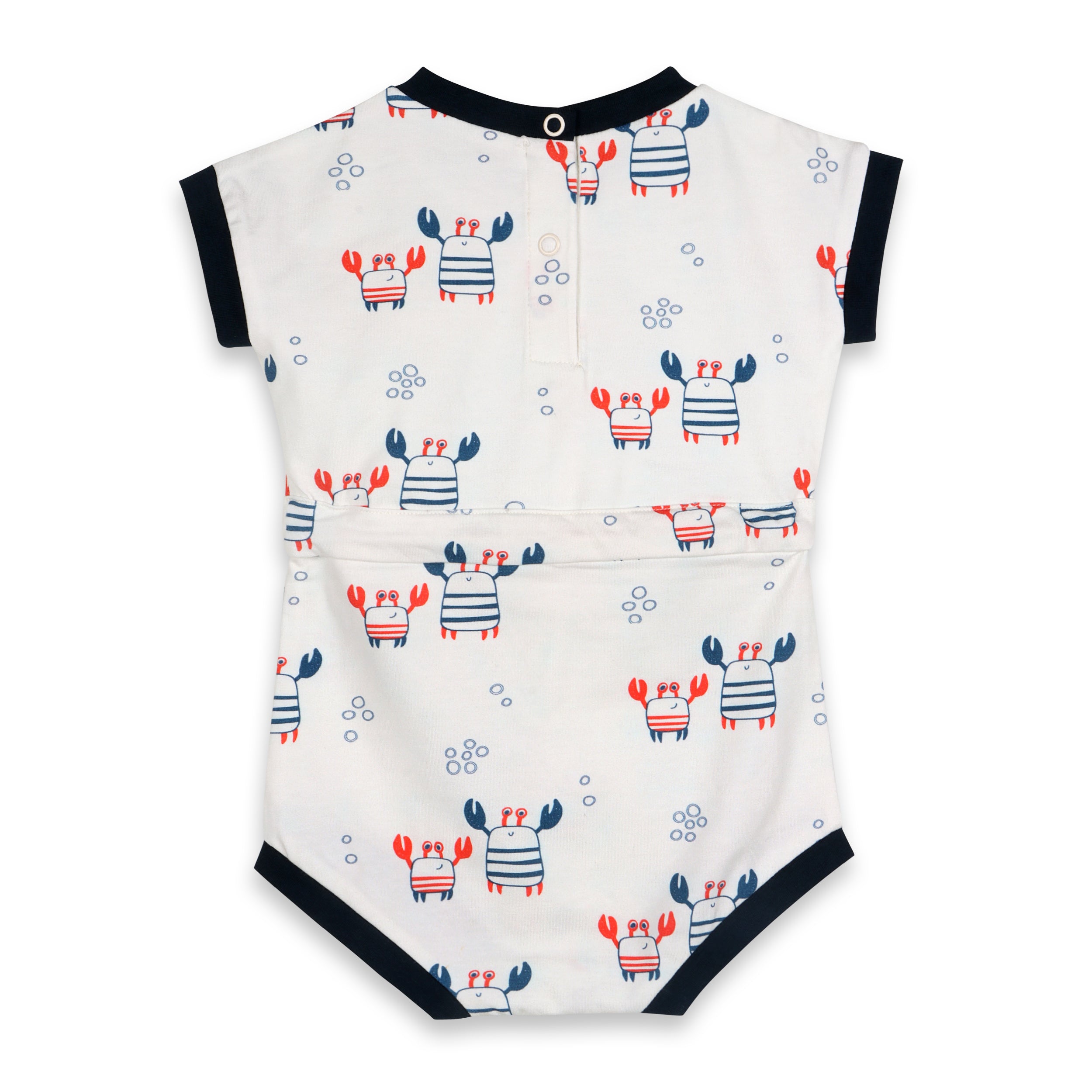 Nautical Crab Waist Tie Short Baby Romper (Organic Jersey)