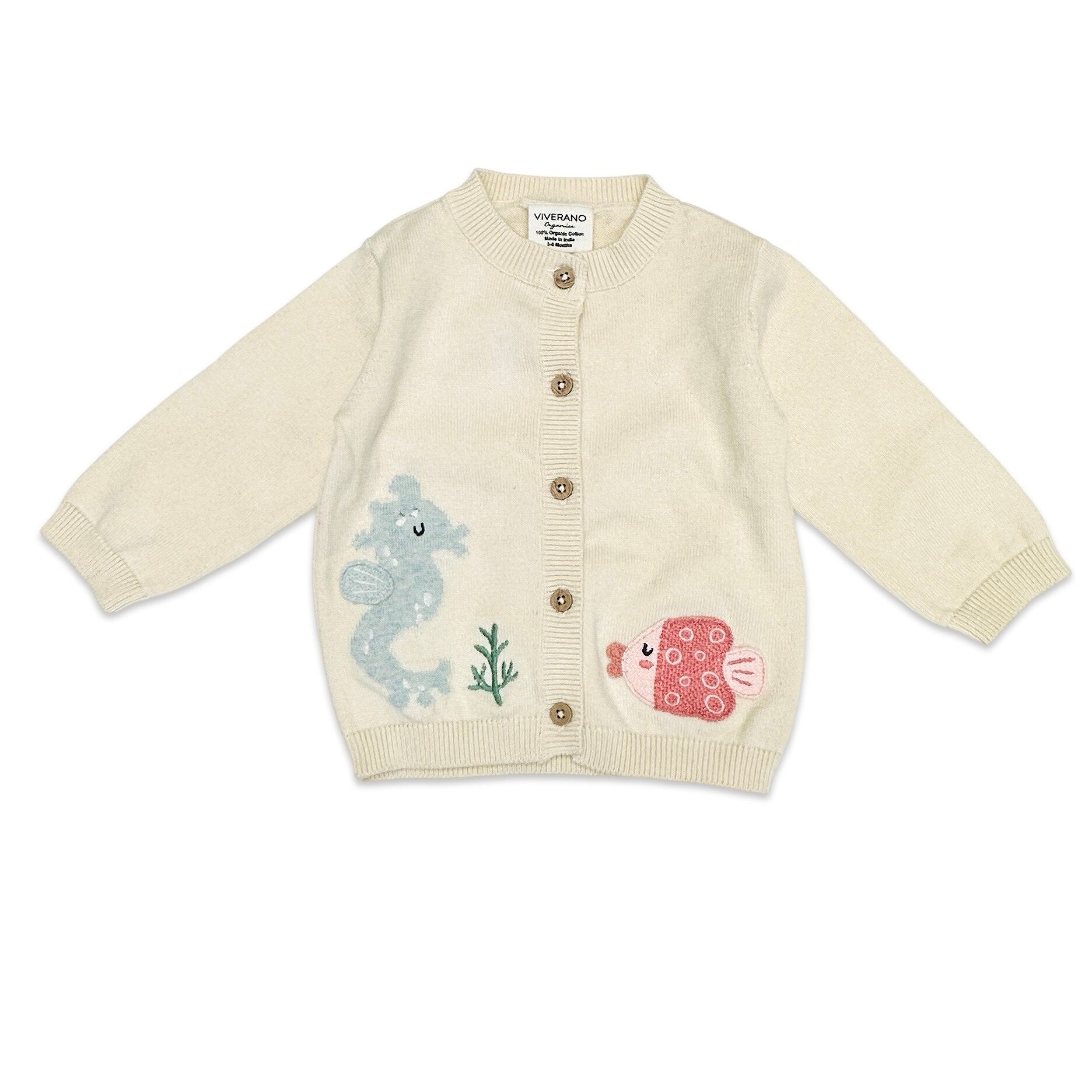 Ocean Friends Jacquard Knit Baby Cardigan Sweater (Organic Cotton)