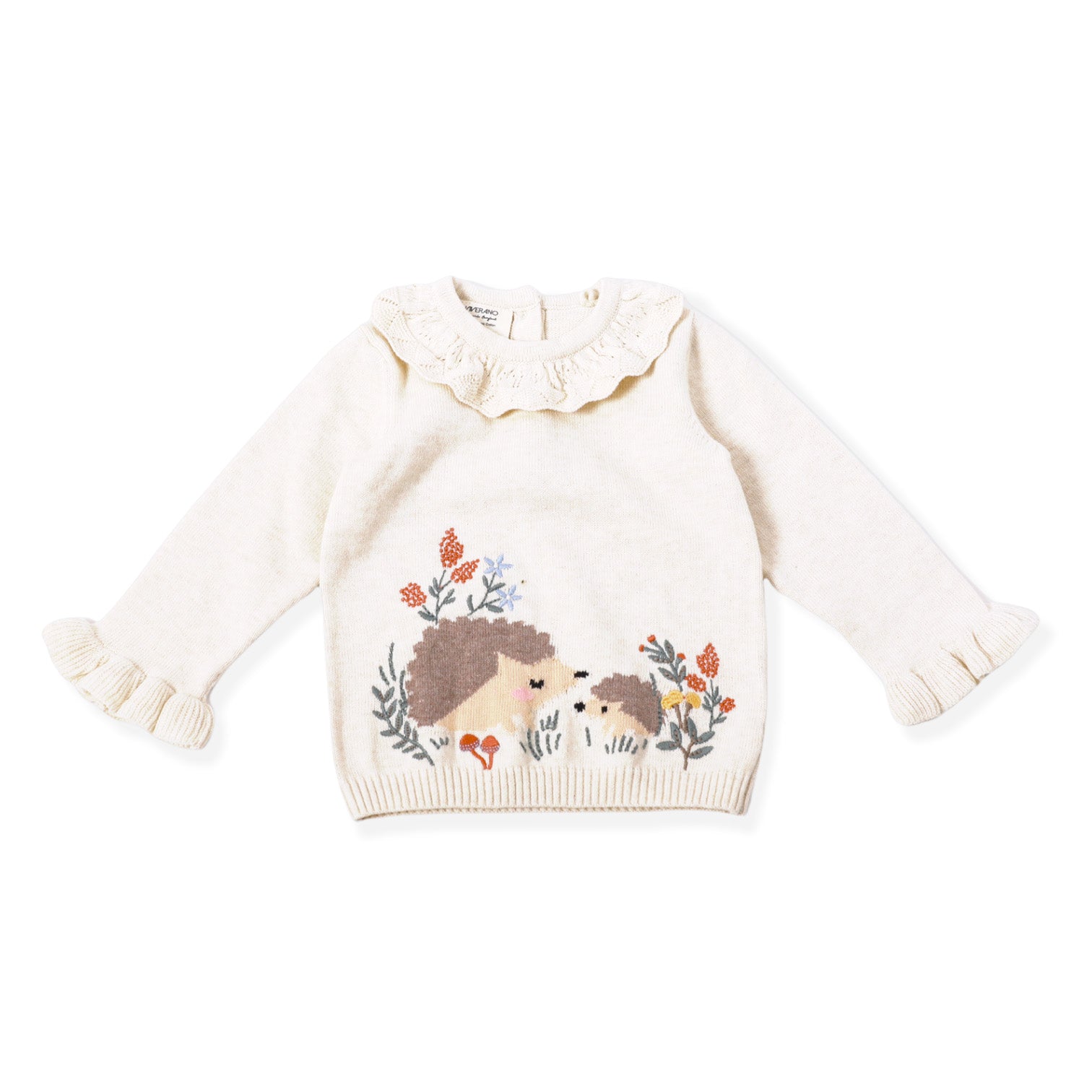 Hedgehog & Pointelle Collar Baby Sweater (Organic Cotton)