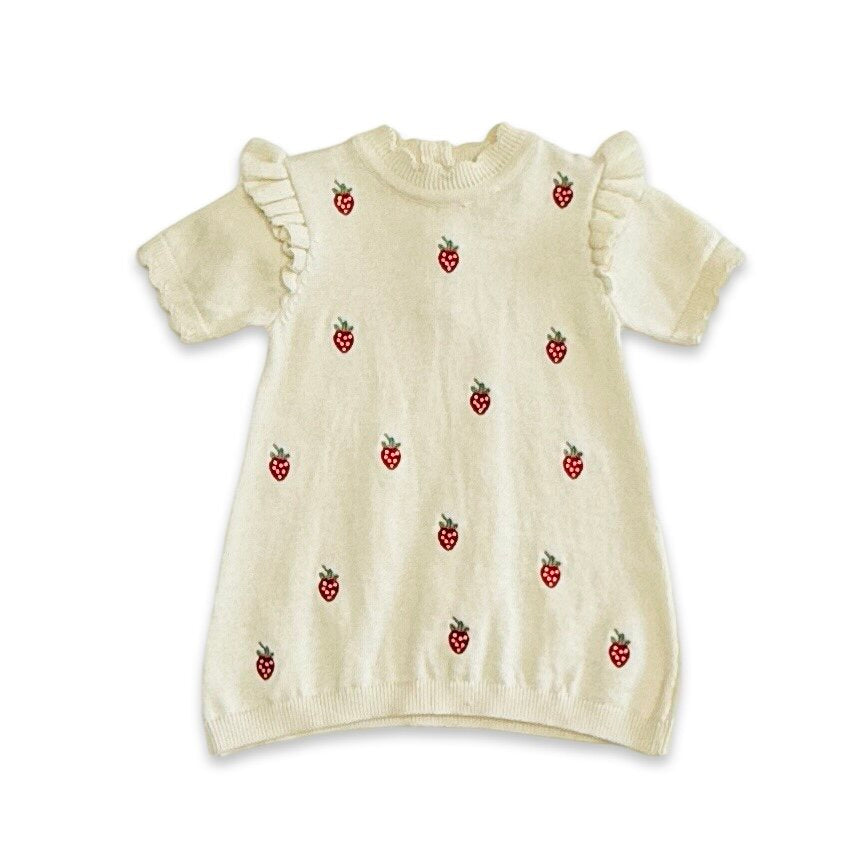 Strawberry Embroidered Sweater Knit Baby Dress (Organic Cotton)