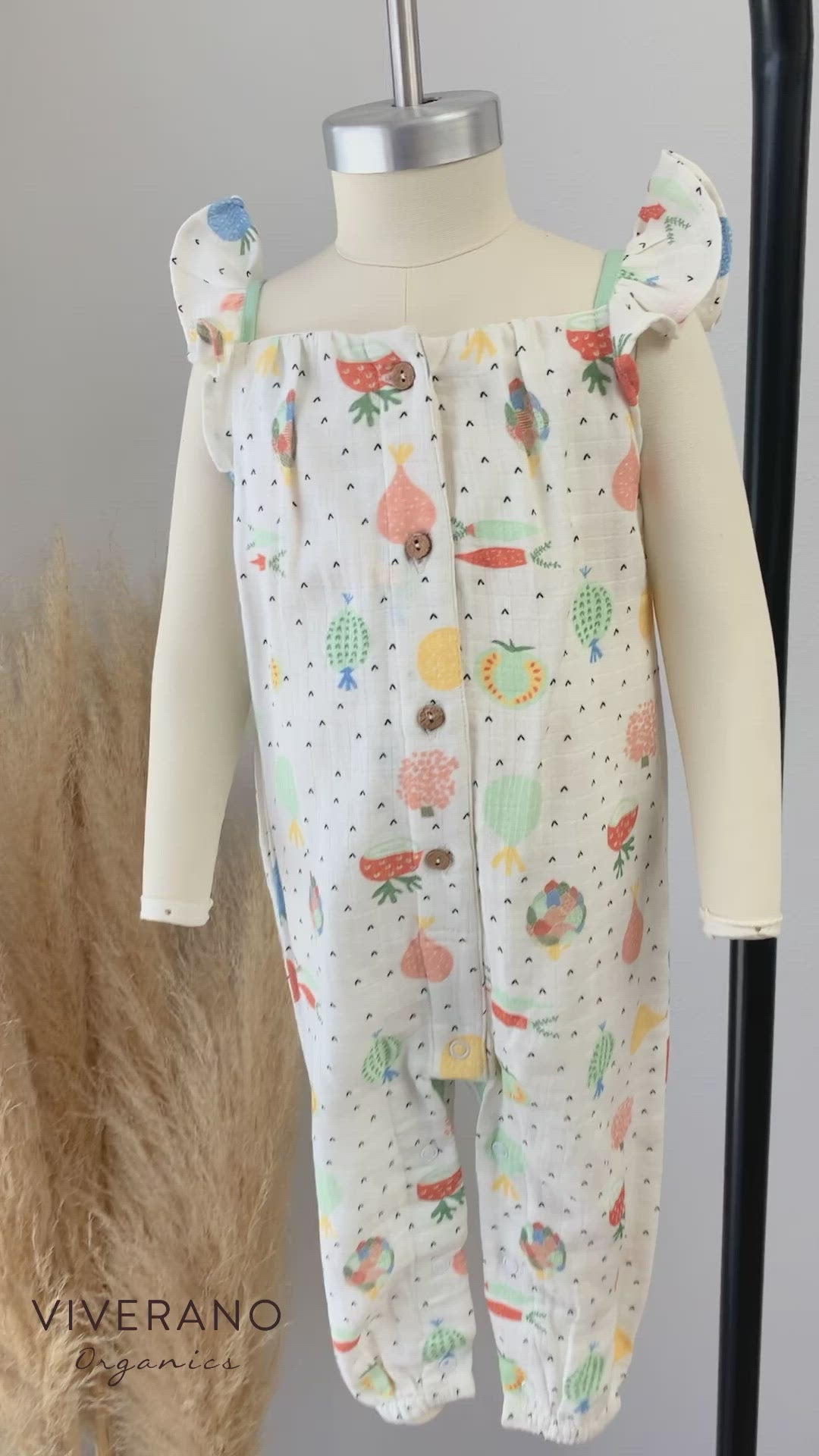 Veggie Ruffle & Button Jumpsuit Romper (Organic Muslin)