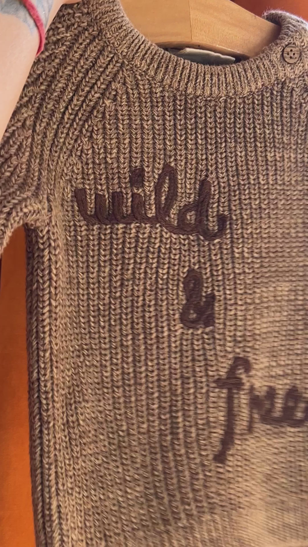 Wild & Free Embroidered Chunky Knit Baby Pullover Sweater (Organic Cotton)